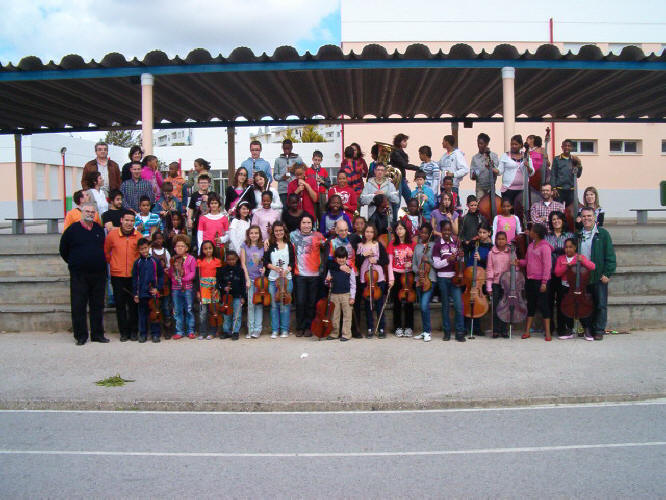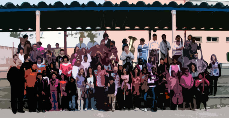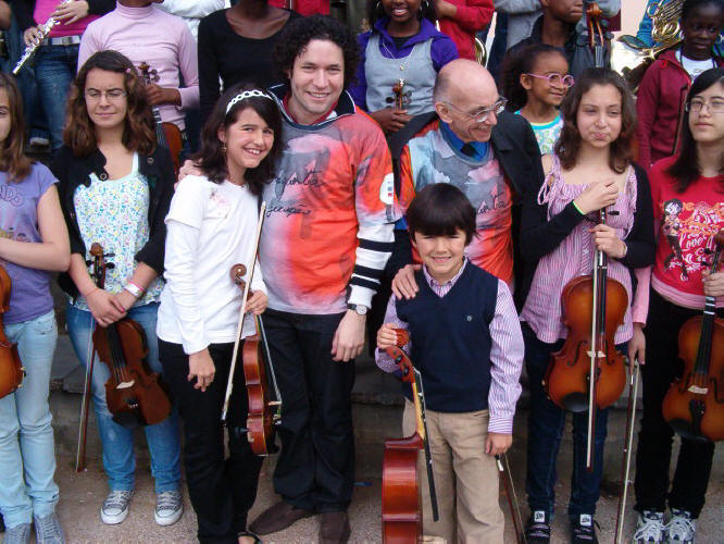 | Sábado, dia 25 de Abril de 2009, a Orquestra "Geração" recebeu na nossa escola o economista/músico venezuelano José António Abreu, responsável pelo "El Sistema" e o notável maestro Gustavo Dudamel. Esta visita teve por objectivo mostrar o trabalho desenvolvido por esta orquestra infanto-juvenil que se inspira no programa social e cultural venezuelano criado em 1975 por José António Abreu. A Orquestra "Geração" teve ainda o privilégio de ser dirigida pelo conceituado maestro. | ||||